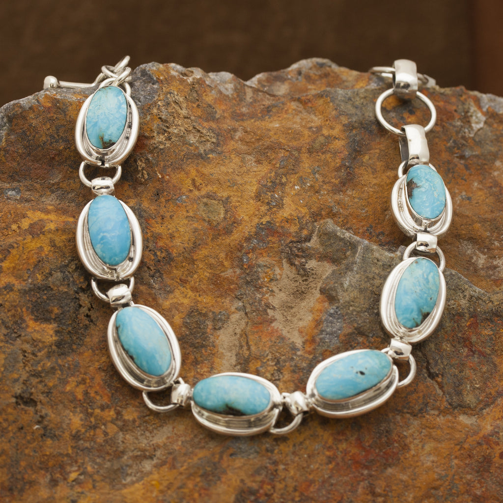 This bracelet features a gorgeous piece of Candelaria Turquoise.