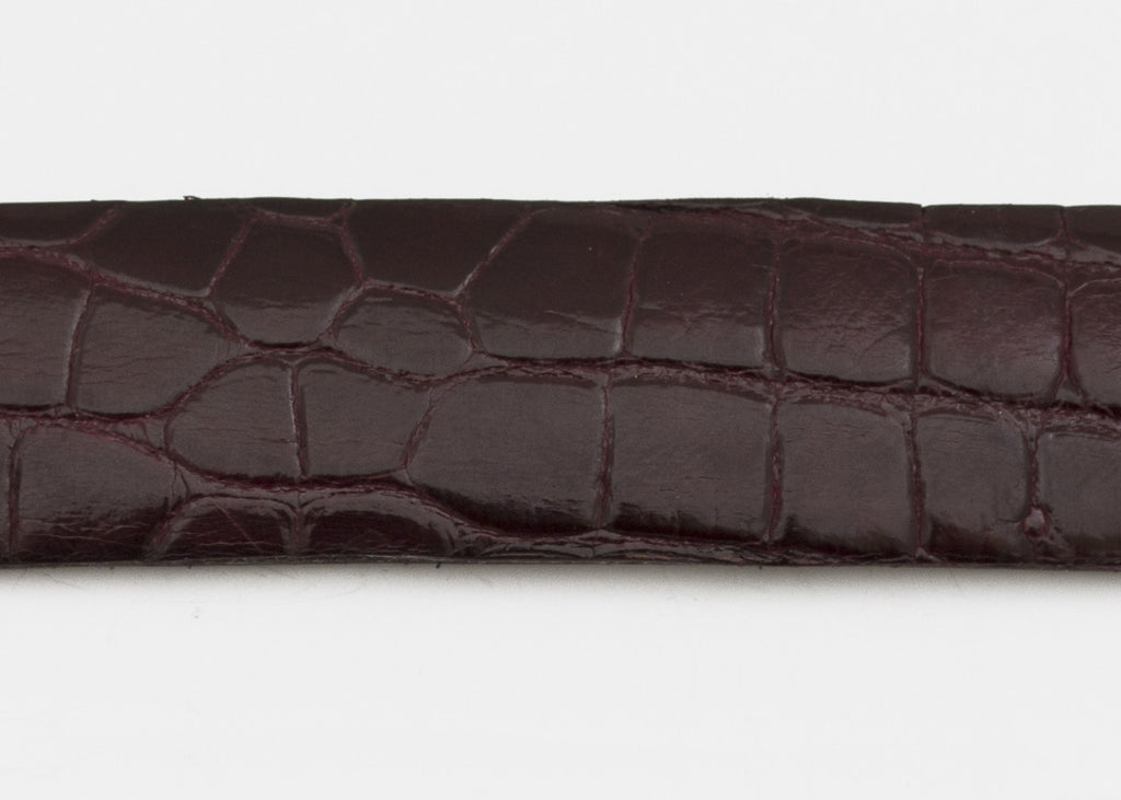 Genuine Louisiana Alligator, the finest exotic skin, is the heart of Black Arrow belts. With its classic finish, it is truly the diamond of exotic leathers. Our belt makers time tested skills and hand cutting techniques allow them to craft belts that are unique, highlighting the individual characteristics of the skin and affording them the opportunity to craft one piece belts. Buckle Not Included. This is our Burgundy Glazed color. Color, texture and skin pattern may vary slightly from sample, as every alligator skin is different and unique.