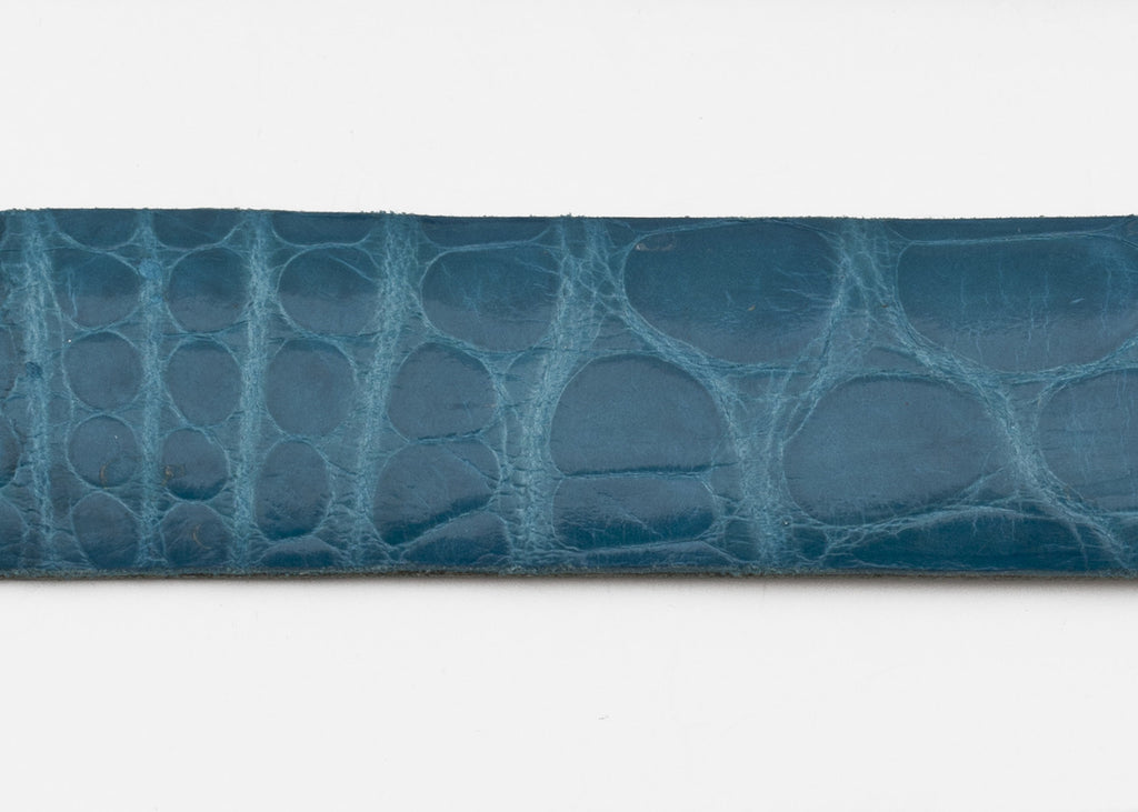 Genuine Louisiana Alligator, the finest exotic skin, is the heart of Black Arrow belts. With its classic finish, it is truly the diamond of exotic leathers. Our belt makers time tested skills and hand cutting techniques allow them to craft belts that are unique, highlighting the individual characteristics of the skin and affording them the opportunity to craft one piece belts. Buckle Not Included. This is our Turquoise Glazed color. Color, texture and skin pattern may vary slightly from sample, as every alligator skin is different and unique.