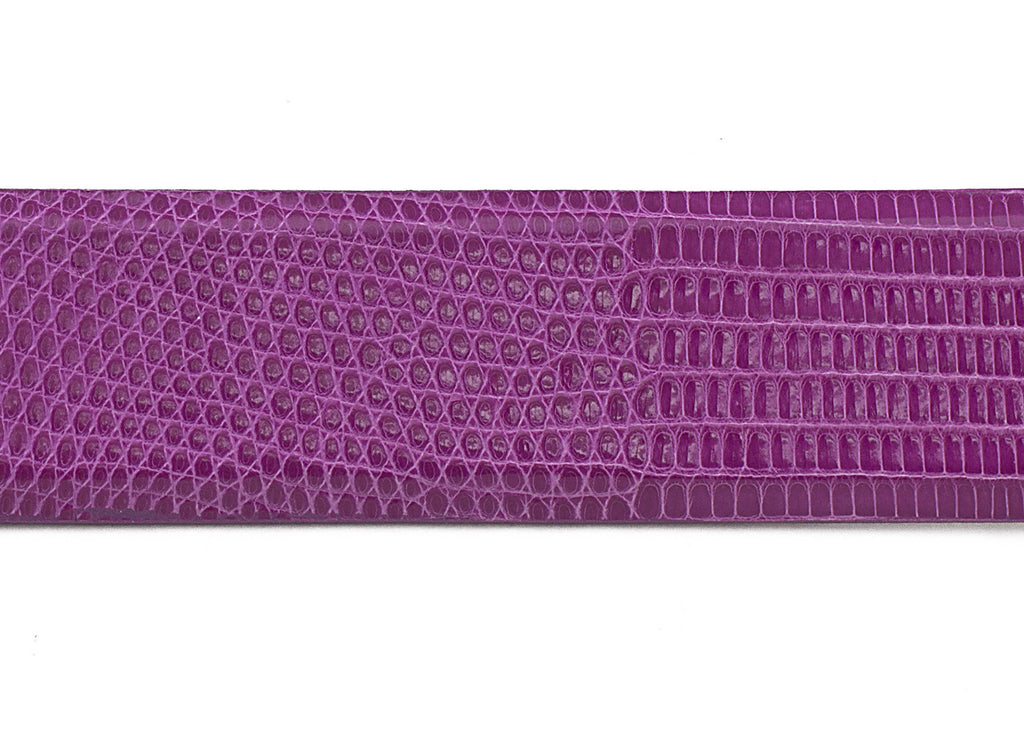 The Indonesian Java or Ring Lizards offer a leather that is incredibly smooth and glossy. It's is also very strong, despite it's thinner nature, and lizard belts wil last for years. Because of it's versatile nature, it also lends itself to being dyed a variety of vibrant and striking colors. The patterns are tight and consistent, making for a fairly predictable look that fits a variety of styles. Java Lizard shows its charm with the subtle highs and lows of its scale pattern. Buckle Not Included. This is our Azalea color.