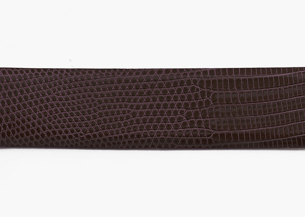 The Indonesian Java or Ring Lizards offer a leather that is incredibly smooth and glossy. It's is also very strong, despite it's thinner nature, and lizard belts wil last for years. Because of it's versatile nature, it also lends itself to being dyed a variety of vibrant and striking colors. The patterns are tight and consistent, making for a fairly predictable look that fits a variety of styles. Java Lizard shows its charm with the subtle highs and lows of its scale pattern. Buckle Not Included. This is our Indian Pink color.