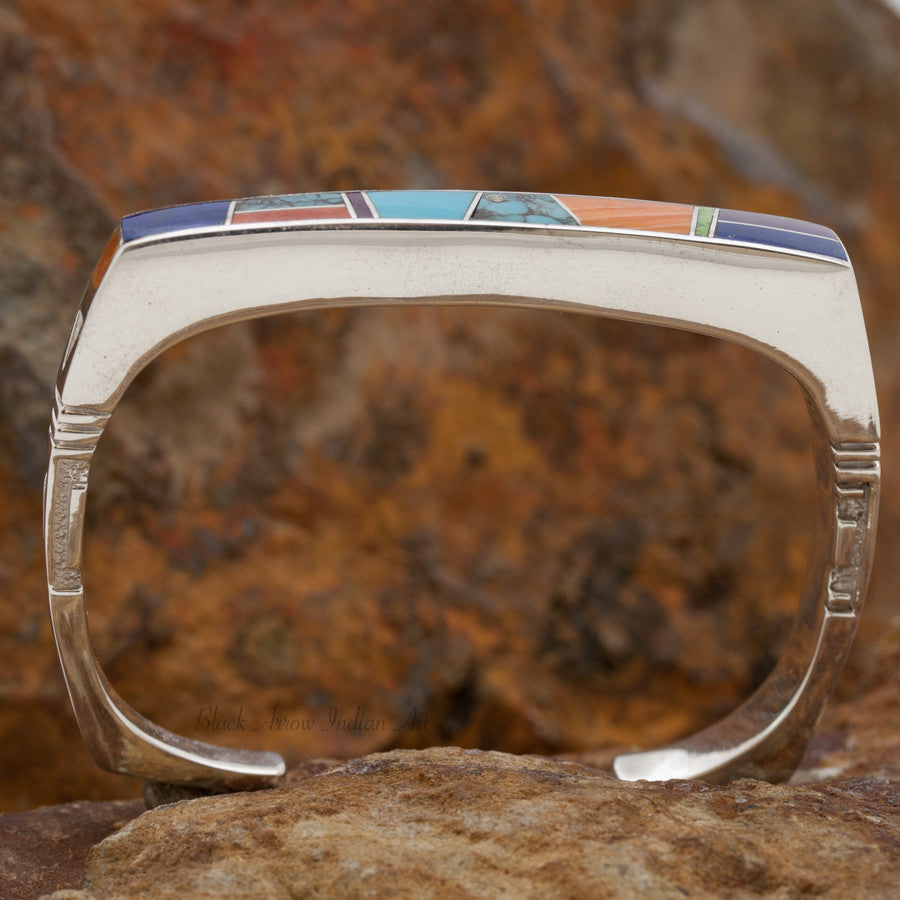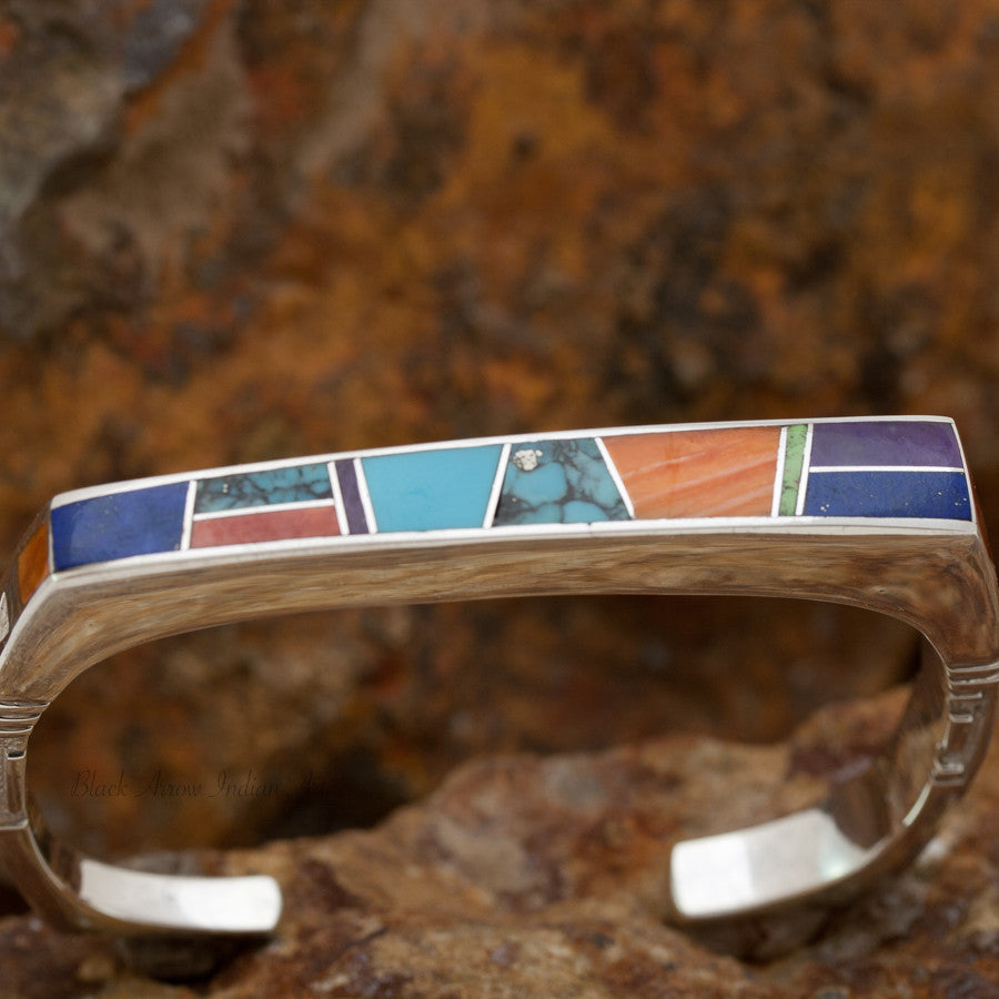 David Rosales Indian Summer Inlaid Modern Sterling Silver Bracelet