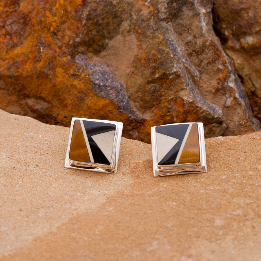 These gorgeous Sterling Silver Earrings, as part of the Kayenta collection, feature Black Jade, Tiger's Eye, and White Jasper.