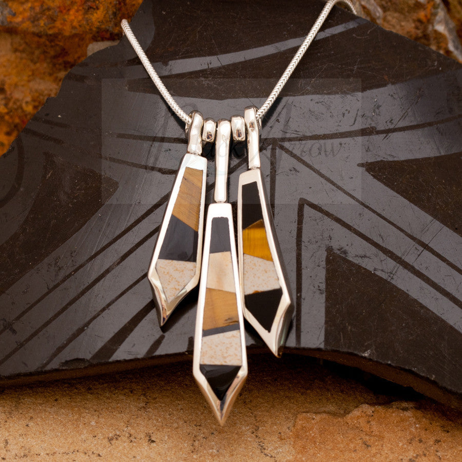This gorgeous Sterling Silver Pendant with chain, as part of the Kayenta collection, features Black Jade, Tiger's Eye, and White Jasper.