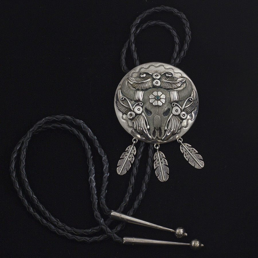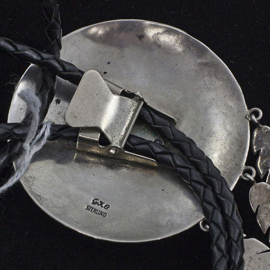 This stunning Bolo and Buckle Set is crafted in Sterling Silver. The bolo strap is leather.