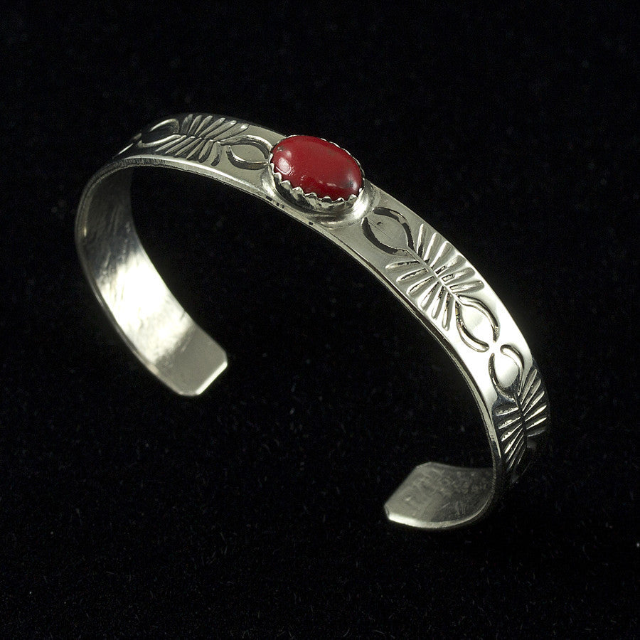 Child's Red Coral Cuff Bracelet - Sterling Silver