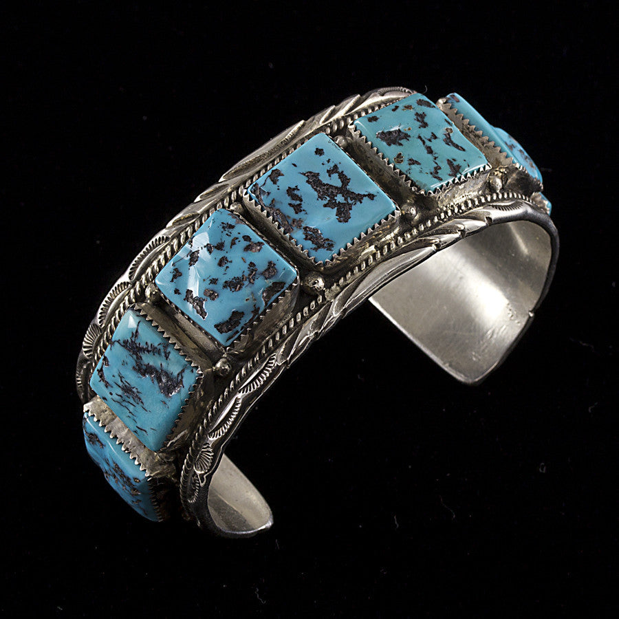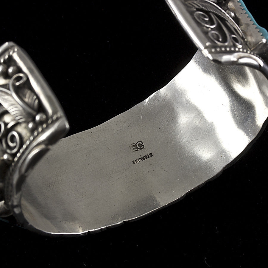 This impressive Cuff Bracelet is crafted in Sterling Silver and Turquoise.