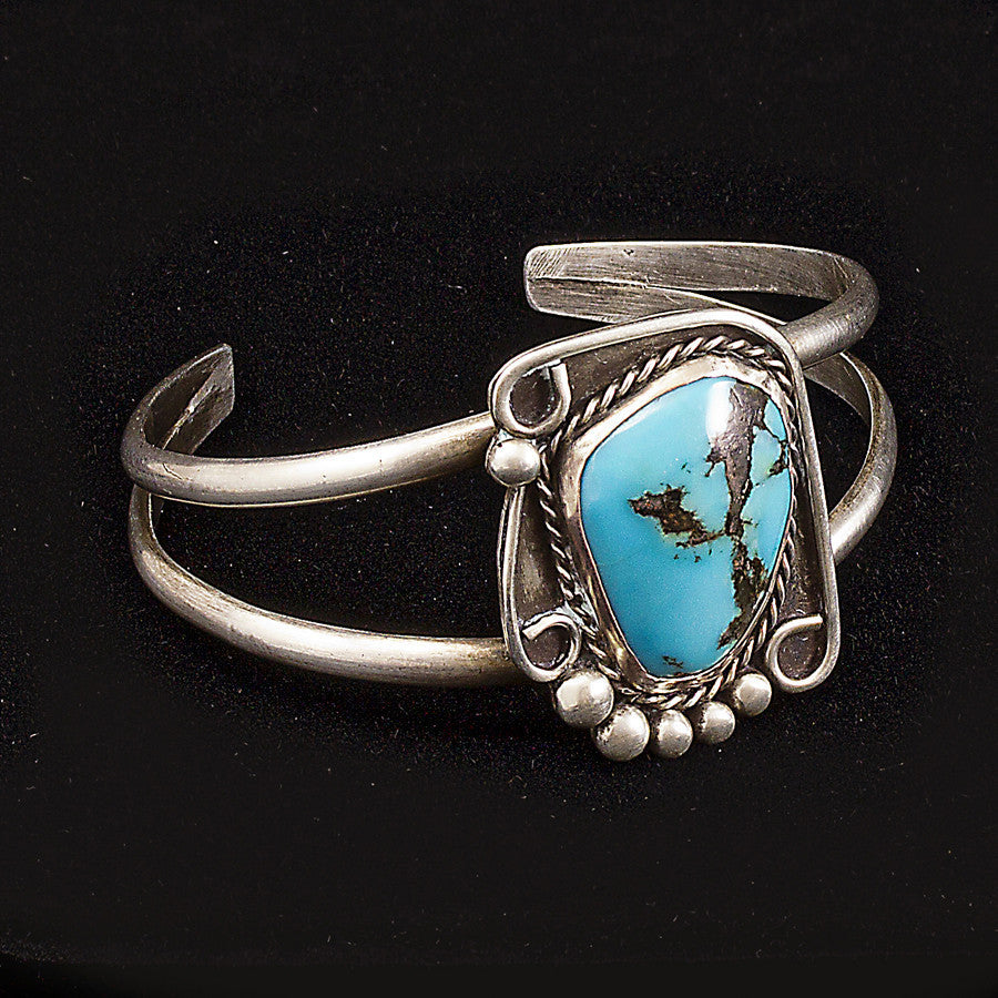 This beautiful Cuff Bracelet is crafted in Sterling Silver and Turquoise.