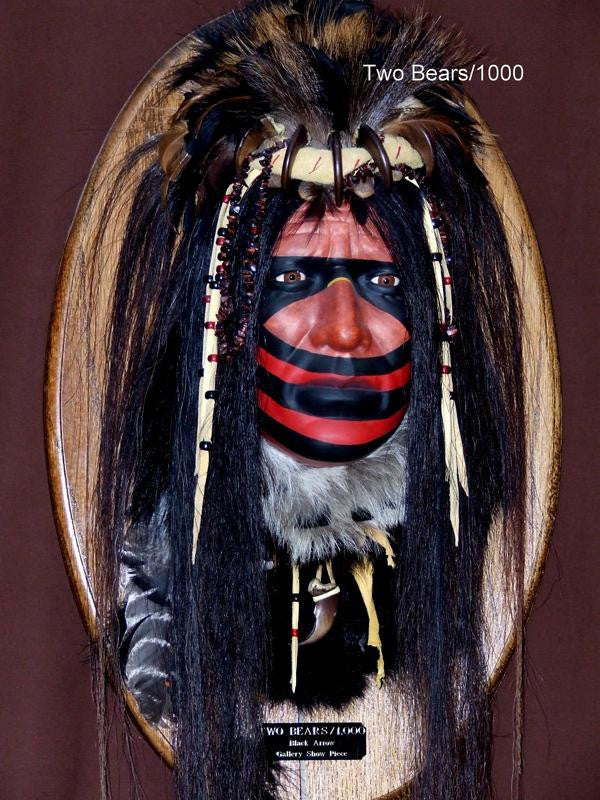 Two Bears wears a crown of bear claws that are believed to contain curing powers. The claws were taken from an adversary in battle and are so highly prized they are passed down from generation to generation. Two Bears honors the bear spirit, thereby bringing blessings upon himself and his tribe.Two Bears II is a Limited Edition/ 30.