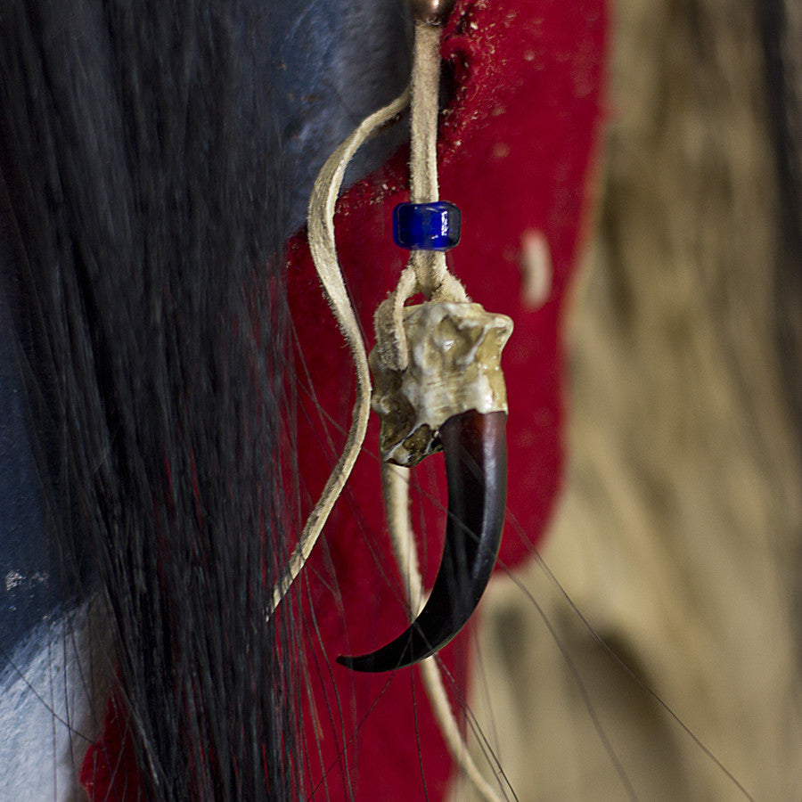 War Paint is a symbol of Native American tribes and a warrior in every aspect. The war cap turban of fur, feathers, and horns, combined with face paint ( made from plant roots, clay, and buffalo fat ) was worn to instill fear in the enemy and invoke the warrior’s guiding spirit. He is dressed in his best regalia in preparation to meet the Creator and to die knowing he fought and looked his best. War Paint II is a Limited Edition/ 35. 34" x 12" x 22"