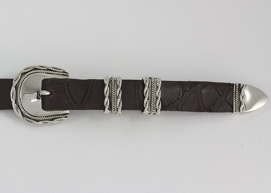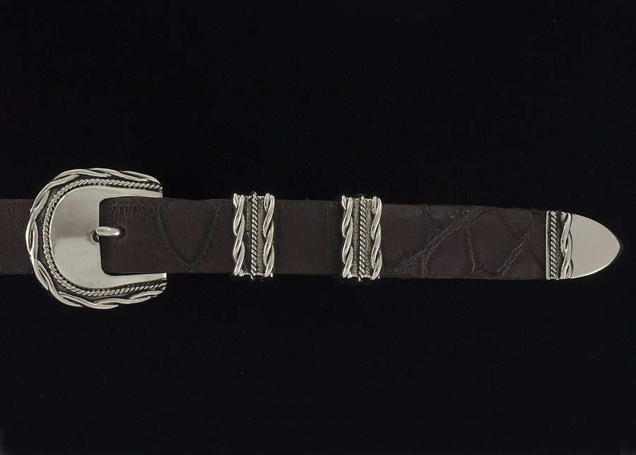This Belt Buckle Set is handcrafted in White Bronze. Designed by Alexander Kalifano and each piece bears his signature stamp.