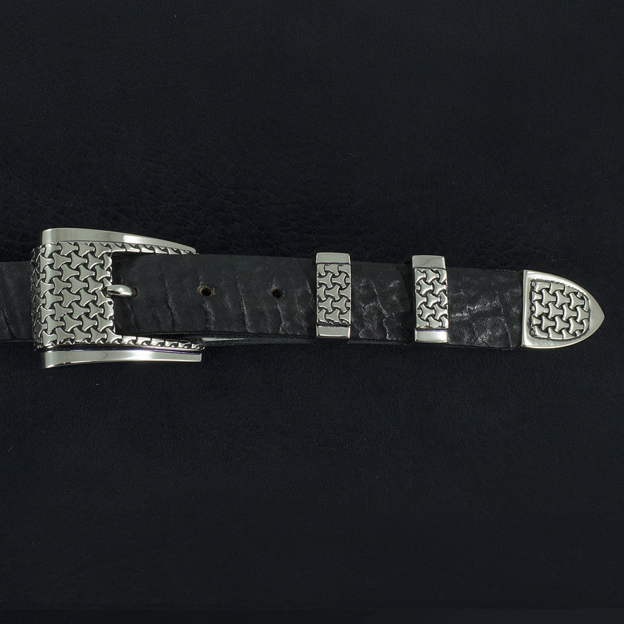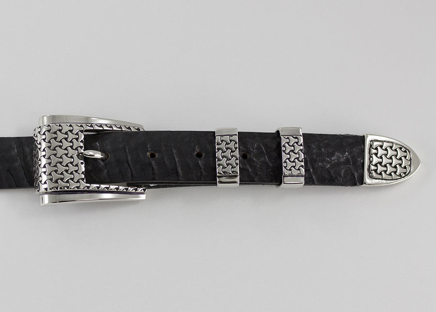 This Belt Buckle Set is handcrafted in White Bronze. Designed by Alexander Kalifano and each piece bears his signature stamp.