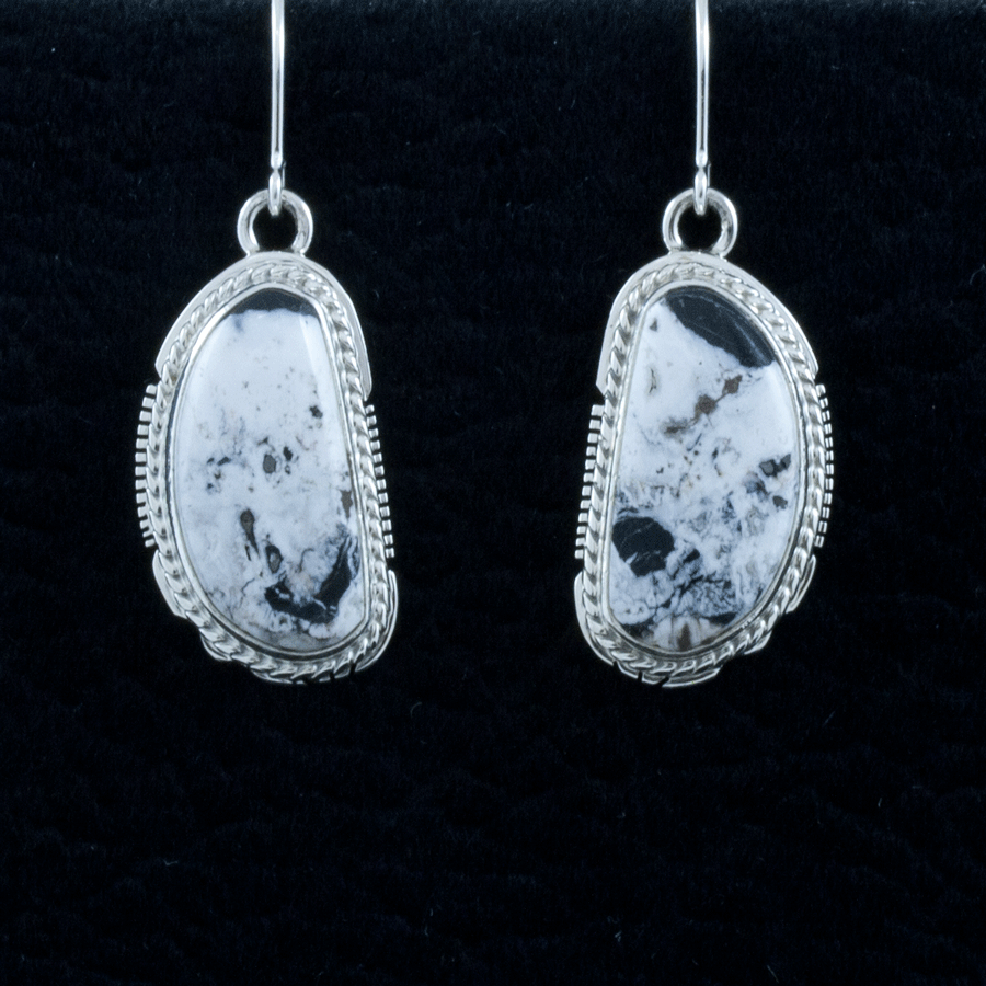 White Buffalo, Howlite, Calcaite, Black Arrow Indian Art - Native American Sterling Earrings 1-800-621-6668