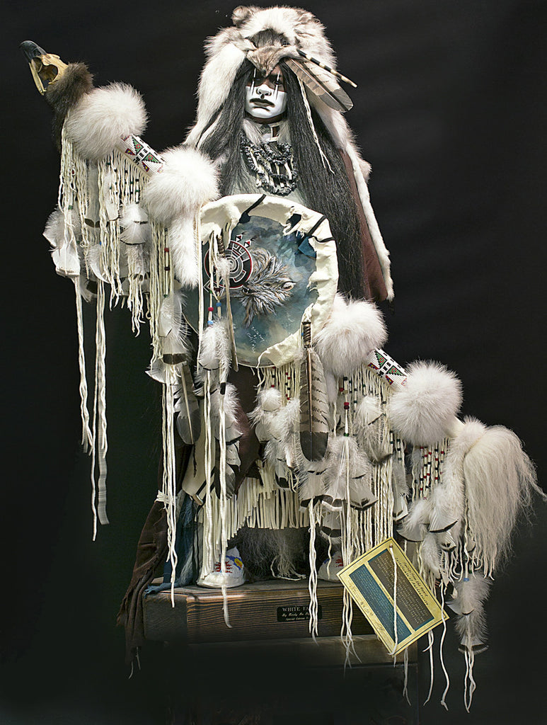 Cindy Jo carefully creates each piece totally by hand, from sculpturing the clay, to painting, feathering and traditional beading. Cindy Jo uses the most natural materials, custom creating her own recipe for the clay of Mother Earth. She recreates the powerful and vivid colors of nature, as well as the most elemental materials that Mother Earth has provided for her people for many years. Her lifetime research along with her own unique ideas lead her on to represent, promote, preserve, and protect a time and a people whose heritage fulfills a vast part of the circle of life.