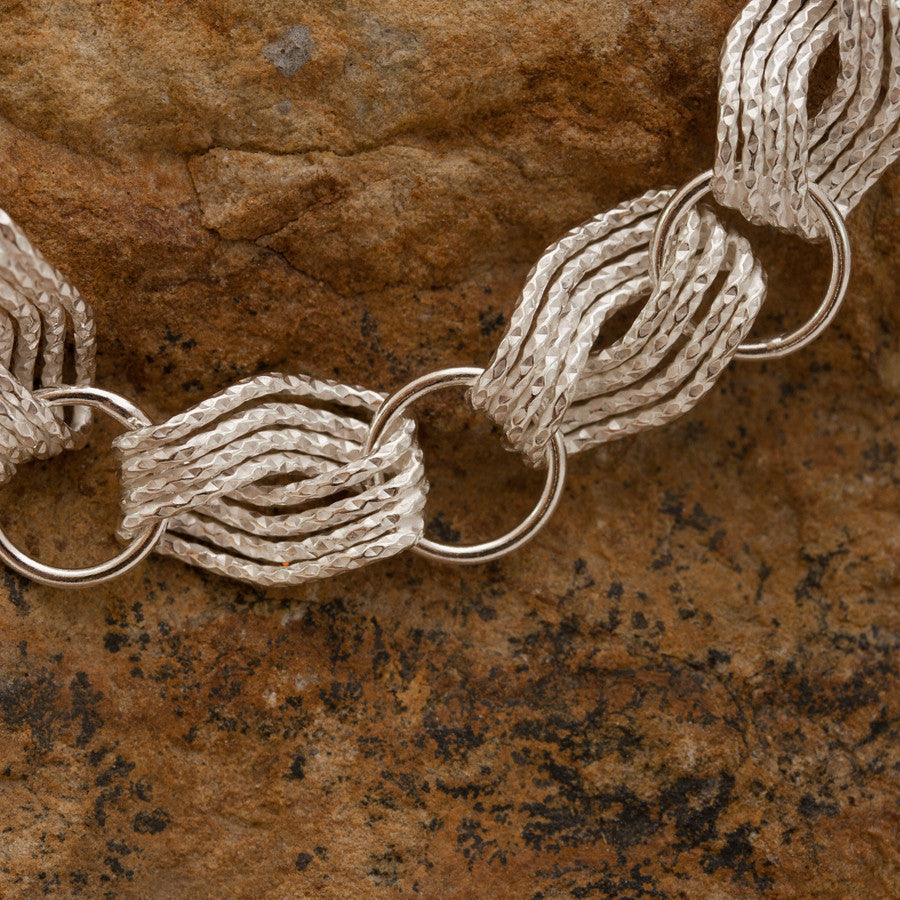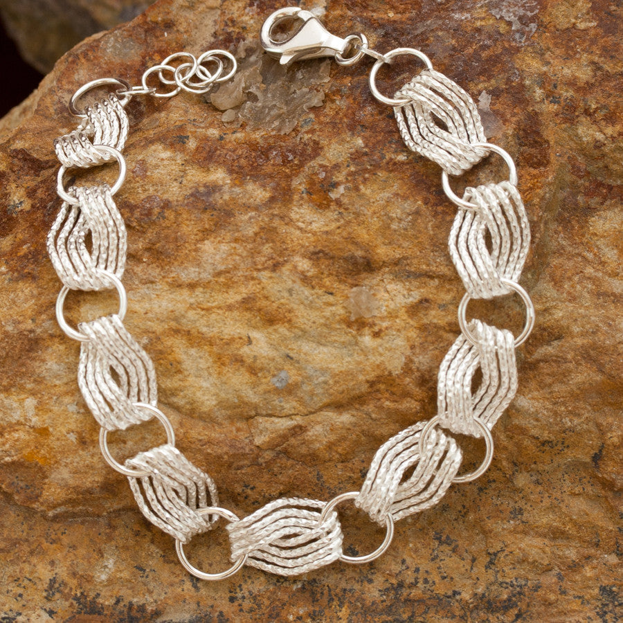 Woven Wave Sterling Silver and Rhodium Bracelet