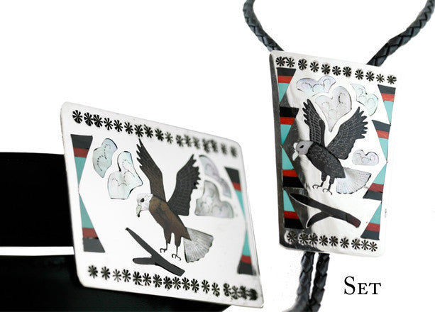 Zuni Bolo and Buckle Set - Sterling Silver